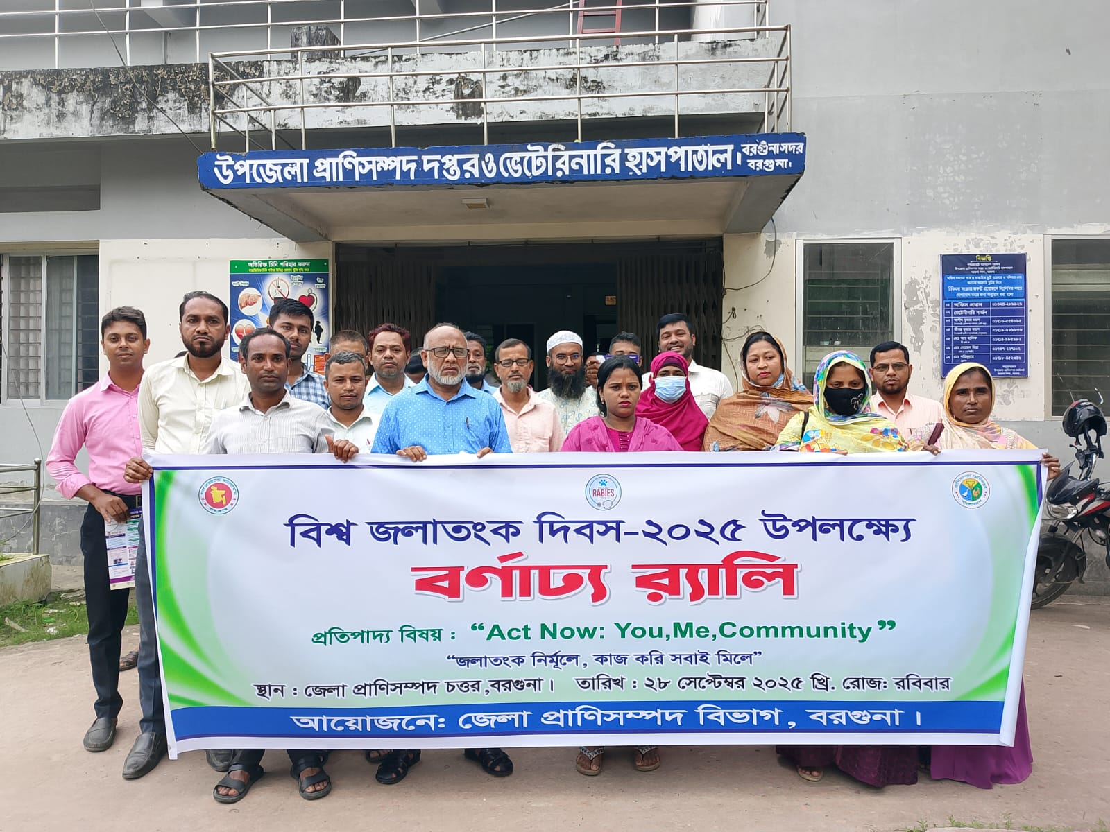 “জলাতঙ্ক নির্মূলে কাজ করি সবাই মিলে” এই প্রতিপাদ্য নিয়ে বরগুনায় বিশ্ব জলাতঙ্ক দিবস উপলক্ষ্যে বর্ণাঢ্য র্যালি ও আলোচনা সভা অনুষ্ঠিত হয়েছে।