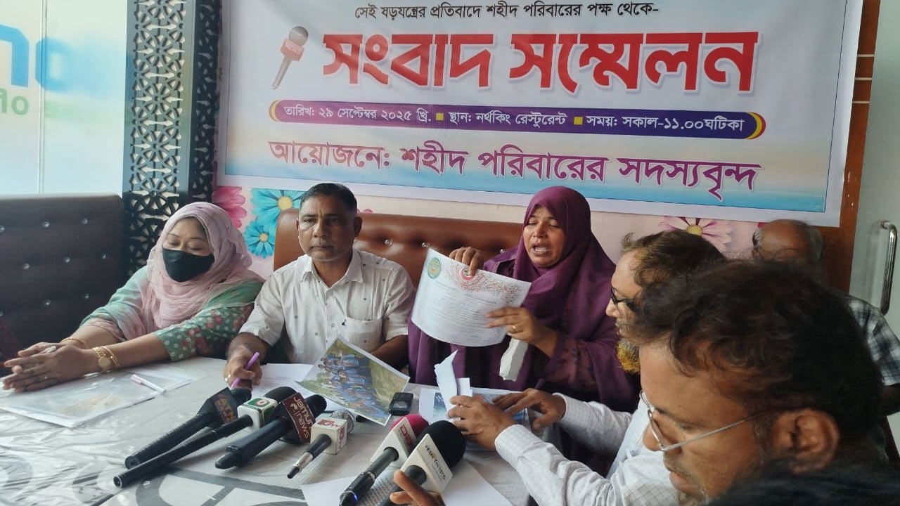 জুলাই বিপ্লবে অংশগ্রহণকারী ৬ শহীদ যোদ্ধাকে নিয়ে ষড়যন্ত্রের প্রতিবাদে সংবাদ সম্মেলন করেছেন তাদের পরিবারের সদস্যরা।