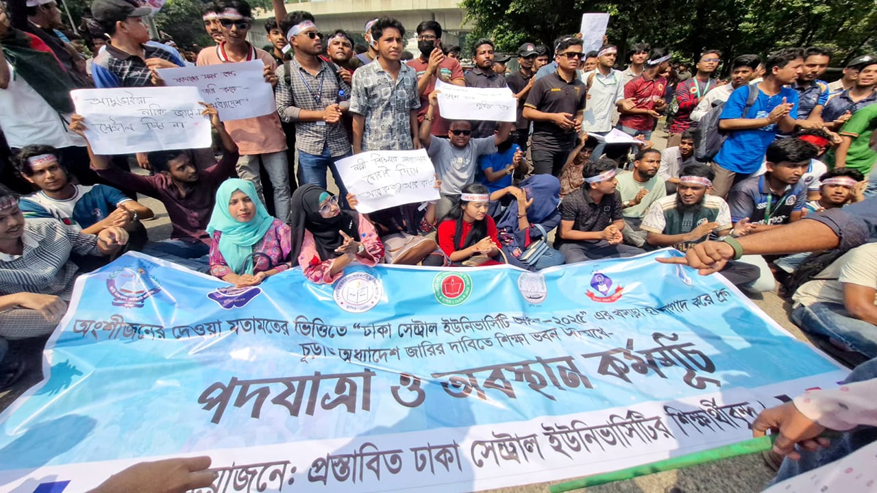 শিক্ষার্থীরা জানান, সরকার ঘোষিত নতুন বিশ্ববিদ্যালয় আইনের বাস্তবায়নে কোনো নির্দিষ্ট সময়সূচি বা রোডম্যাপ না থাকায় আমরা অনিশ্চয়তায় ভুগছি। সরকারের প্রস্তাবিত আইন বাস্তবায়নে বিলম্ব অযৌক্তিক।