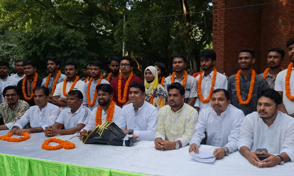 বৃহস্পতিবার (১৬ অক্টোবর) বিকাল সাড়ে ৩টায় বিশ্ববিদ্যালয়ের বুদ্ধিজীবী চত্বরে আয়োজিত এক সংবাদ সম্মেলনে তাদের সংবর্ধনা দেন তিনি।