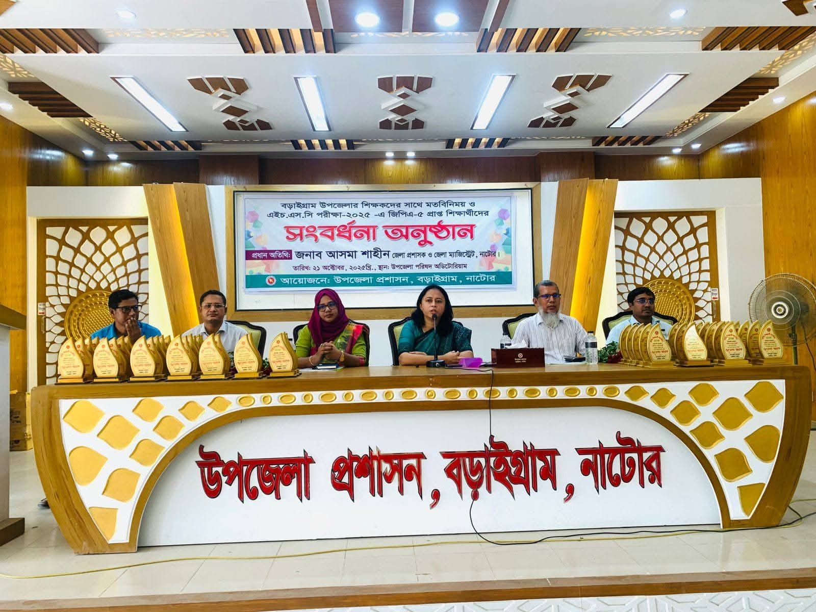 পরবর্তীতে তিনি বড়াইগ্রাম উপজেলার শিক্ষকদের সঙ্গে শিক্ষার মানোন্নয়ন বিষয়ে মতবিনিময় করেন এবং এইচএসসি ২০২৫ পরীক্ষায় জিপিএ-৫ প্রাপ্ত শিক্ষার্থীদের সংবর্ধনা অনুষ্ঠানে প্রধান অতিথি হিসেবে অংশগ্রহণ করেন।