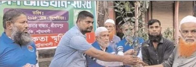 চলো করি বৃক্ষরোপণ, গড়ে তুলি সবুজ ভুবন’ এই স্লোগানকে সামনে রেখে পটুয়াখালী জেলার দুমকি উপজেলার শ্রীরামপুর ইউনিয়নের তালুকদার বাজারে ফলজ বৃক্ষ বিতরণ কর্মসূচি পালন করেছে একতা স্মৃতি সংসদ। বৃহস্পতিবার তালুকদার বাজারে সংগঠনের অফিসের সামনে আয়োজিত অনুষ্ঠানে সভাপতিত্ব করেন একতা স্মৃতি সংসদের সভাপতি মো. শামীম তালুকদার। প্রধান অতিথি ছিলেন দক্ষিণ বঙ্গ টিচার্স ট্রেনিং কলেজের অধ্যক্ষ মো. রফিকুল ইসলাম তালুকদার। অনুষ্ঠানে ইউপি সদস্য , আবু জাফর মৃধা, মো. কামাল হোসেন হাওলাদার ও মো. সুলাইমান মৃধাসহ স্থানীয় গণ্যমান্য ব্যক্তিরা উপস্থিত ছিলেন। এ কর্মসূচিতে স্থানীয় দরিদ্র মানুষের মাঝে বিভিন্ন প্রজাতির ফলজ গাছের প্রা ৩’শ চারা বিতরণ করা হয়। কাঠাল গাছের চারা হাতে পেয়ে স্থানীয় বৃদ্ধা সোনাবরু বেগম বলেন, “চারা কেনার সামর্থ্য নেই। ক্লাবের লোকজনকে ধন্যবাদ এমন উদ্যোগ নেওয়ার