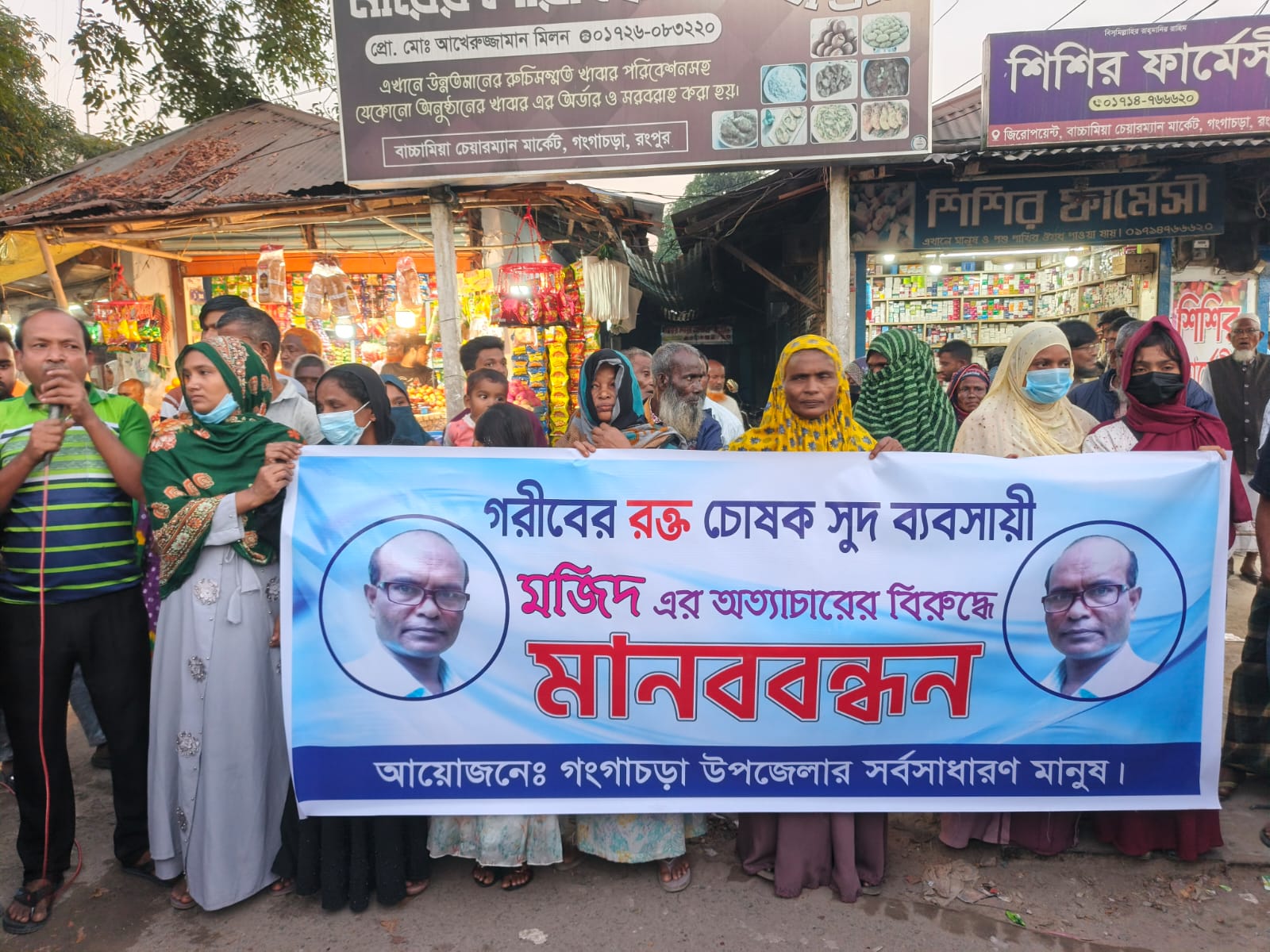 গঙ্গাচড়ার গরীব মানুষের রক্ত চোষা দাদন ব্যবসায়ী মজিদের বিরুদ্ধে মানববন্ধন