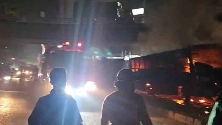রামপুরায় টিভি ভবনের সামনে বাসে আগুন