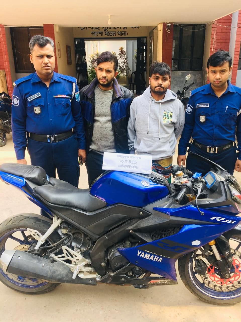 অপরদিকে একই দিলে পাংশা থানার এফআইআর নং-২০, তারিখ- ২৫/০৭/২০২৫ খ্রিঃ,, জি আর নং-১৭৪, তারিখ- ২৫/০৭/২০২৫ খ্রিঃ,, ধারা- ৪৫৪/৩৮০, পেনাল কোড ১৮৬০ অনুযায়ী আরেকটি চুরি মামলার তদন্তে এসআই শরিফুল ইসলামের নেতৃত্বে পুলিশ ব্রাহ্মণবাড়িয়ার বাঞ্ছারামপুরে অভিযান পরিচালনা করে নাজমুল হাসান মুন্না ও মোঃ সমীর মিয়ার দেখানো মতে ব্রাহ্মনবাড়ীয়া জেলার বাঞ্ছারামপুর থানাধীন ভিটিজাগরাচর ভোজন বাড়ী রেস্টুরেন্ট এন্ড পার্টি সেন্টারের সামনে পূর্ব পাশে পাকা রাস্তার উপর থেকে রেসিং ব্লু রঙের Yamaha R15 মোটরসাইকেলটি উদ্ধার করে।