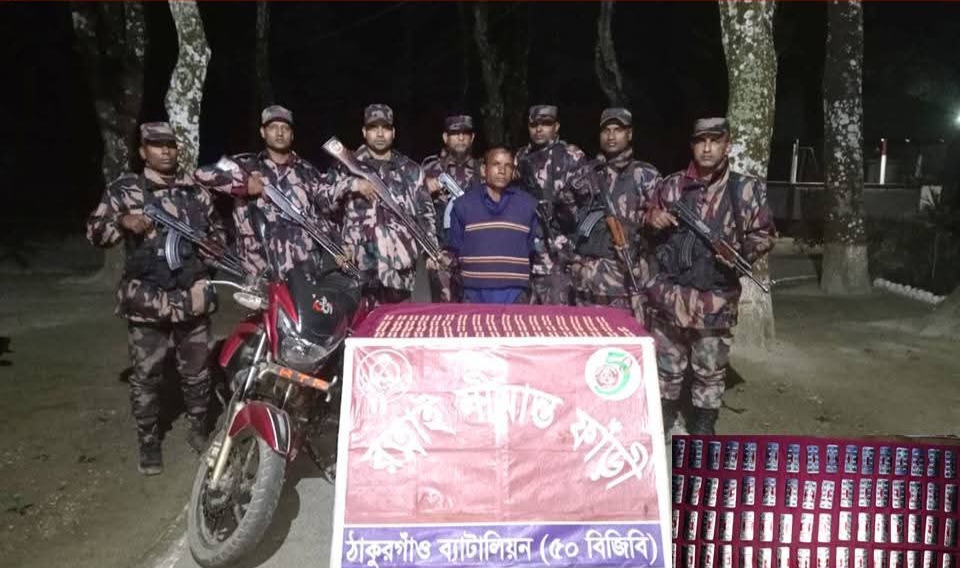 ঠাকুরগাঁও জেলার বালিয়াডাঙ্গী সীমান্ত এলাকায় মাদকবিরোধী তৎপরতার অংশ হিসেবে আবারও সফল অভিযান পরিচালনা করেছে বর্ডার গার্ড বাংলাদেশ (বিজিবি)। গোপন গোয়েন্দা তথ্যের ভিত্তিতে বুধবার গভীর রাতে ৫০ বিজিবি ব্যাটালিয়নের একটি বিশেষ টহলদল দায়িত্বপূর্ণ এলাকায় অভিযান পরিচালনা করে ৭০০ পিস ট্যাপেন্টাডল ট্যাবলেট ও একটি মোটরসাইকেলসহ একজনকে আটক করে।