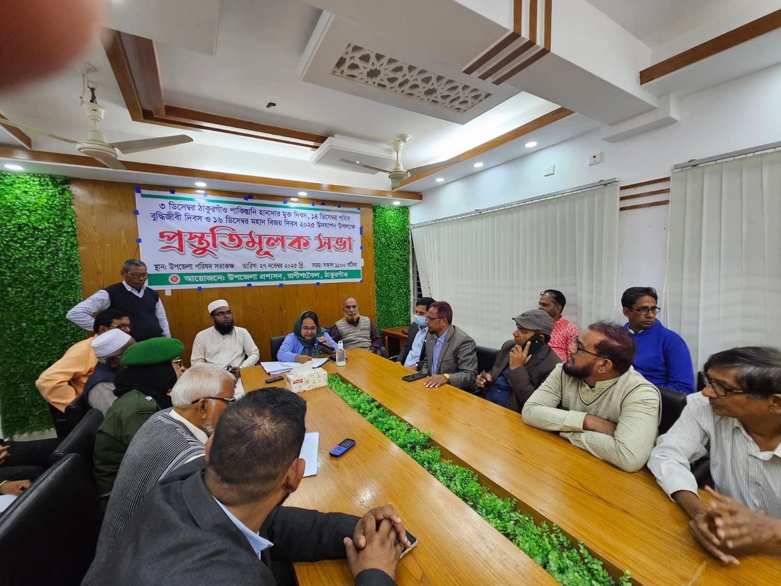 ঠাকুরগাঁওয়ের রাণীশংকৈল উপজেলায় ২০২৫ সালের গুরুত্বপূর্ণ তিনটি জাতীয় দিবস—৩ ডিসেম্বর পাকিস্তানি হানাদার মুক্ত দিবস, ১৪ ডিসেম্বর শহিদ বুদ্ধিজীবী দিবস এবং ১৬ ডিসেম্বর মহান বিজয় দিবস—উদযাপনকে সামনে রেখে প্রস্তুতিমূলক সভা অনুষ্ঠিত হয়েছে।