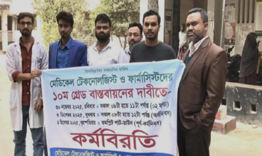 রাজবাড়ী গোয়ালন্দে মেডিকেল টেকনোলজিস্ট–ফার্মাসিস্টদের কর্মবিরতি পালন