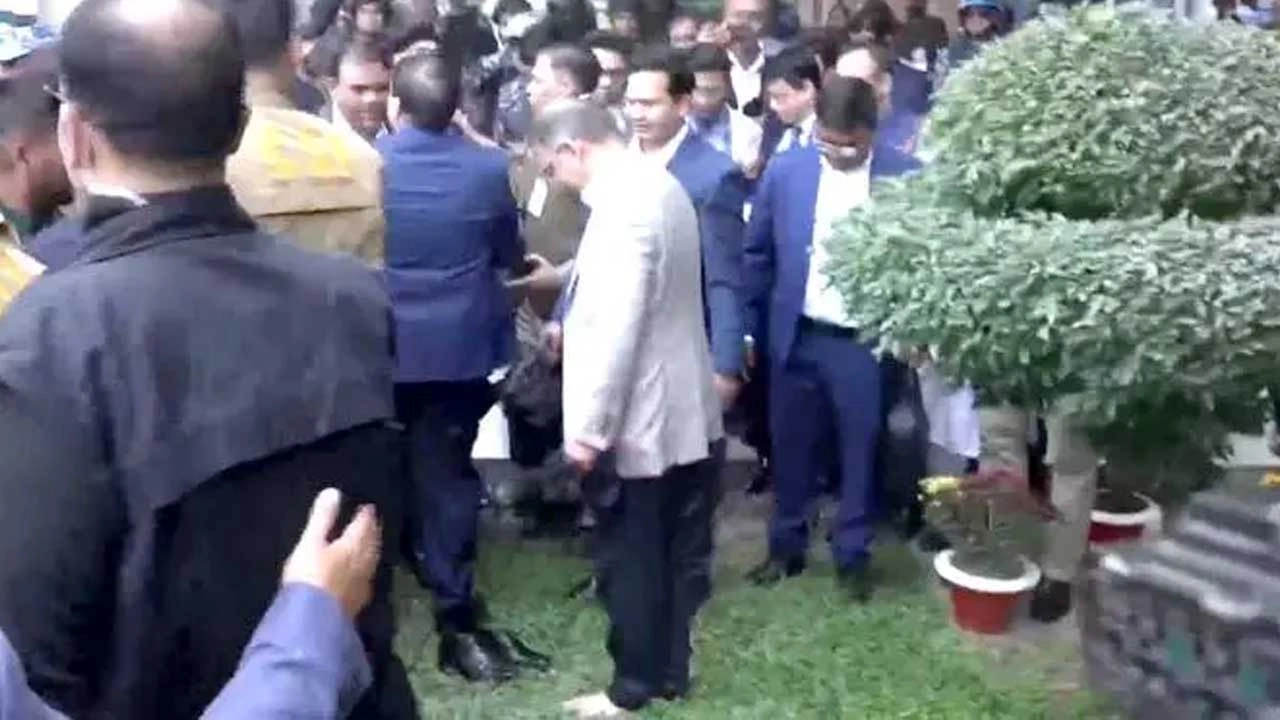 দলীয় সূত্র জানায়, খালি পায়ে মাটি স্পর্শ করার বিষয়টি পরিকল্পনায় ছিল না। হঠাৎ বিমানবন্দর থেকে বেরিয়ে সামনে থাকা ফুল বাগানের ভেতরে চলে যান। সেখানে ঘাস ও কিছু গাঁদা ফুলের গাছ রয়েছে।
