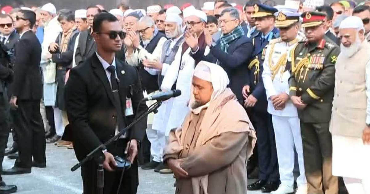 বুধবার বিকেল ৩টা ৩ মিনিটে জাতীয় সংসদ ভবনের দক্ষিণ প্লাজা সংলগ্ন এলাকায় লাখো মানুষের উপস্থিতিতে এই জানাজা অনুষ্ঠিত হয়।জাতীয় মসজিদ বায়তুল মোকাররমের খতিব মাওলানা আবদুল মালেক জানাজায় ইমামতি করেন।