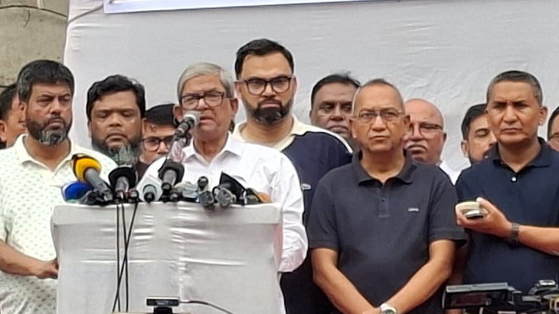 মির্জা ফখরুল বলেন, আমরা নির্বাচন চাই, যে সিদ্ধান্ত হয়েছে সেই সময়টাতে আমরা নির্বাচন চাই। আমরা ভোটের অধিকার ফিরিয়ে দিতে চাই, আমরা জনগণের খাওয়া-পরার ব্যবস্থা করতে চাই, নতুন এক বাংলাদেশ আমরা নির্মাণ করতে চাই আমাদের নেতা তারেক রহমানের নেতৃত্বে।