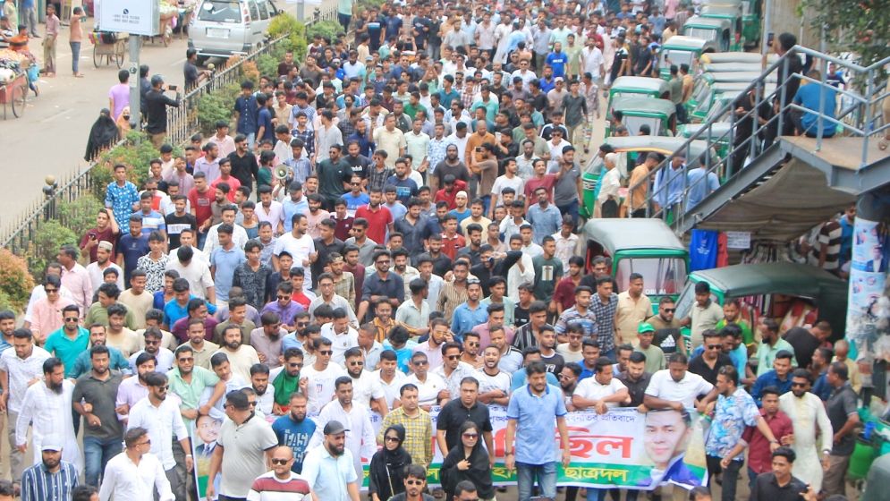 গুপ্ত সংগঠন কর্তৃক মব সৃষ্টির অপচেষ্টা, শিক্ষা প্রতিষ্ঠানে শিক্ষার সুষ্ঠু পরিবেশ বিনষ্ট করা এবং সারা দেশে আইনশৃঙ্খলা পরিস্থিতির অবনতির প্রতিবাদে সোমবার সিলেট জেলা ও মহানগর ছাত্রদলের বিক্ষোভ মিছিল অনুষ্ঠিত হয়েছে।