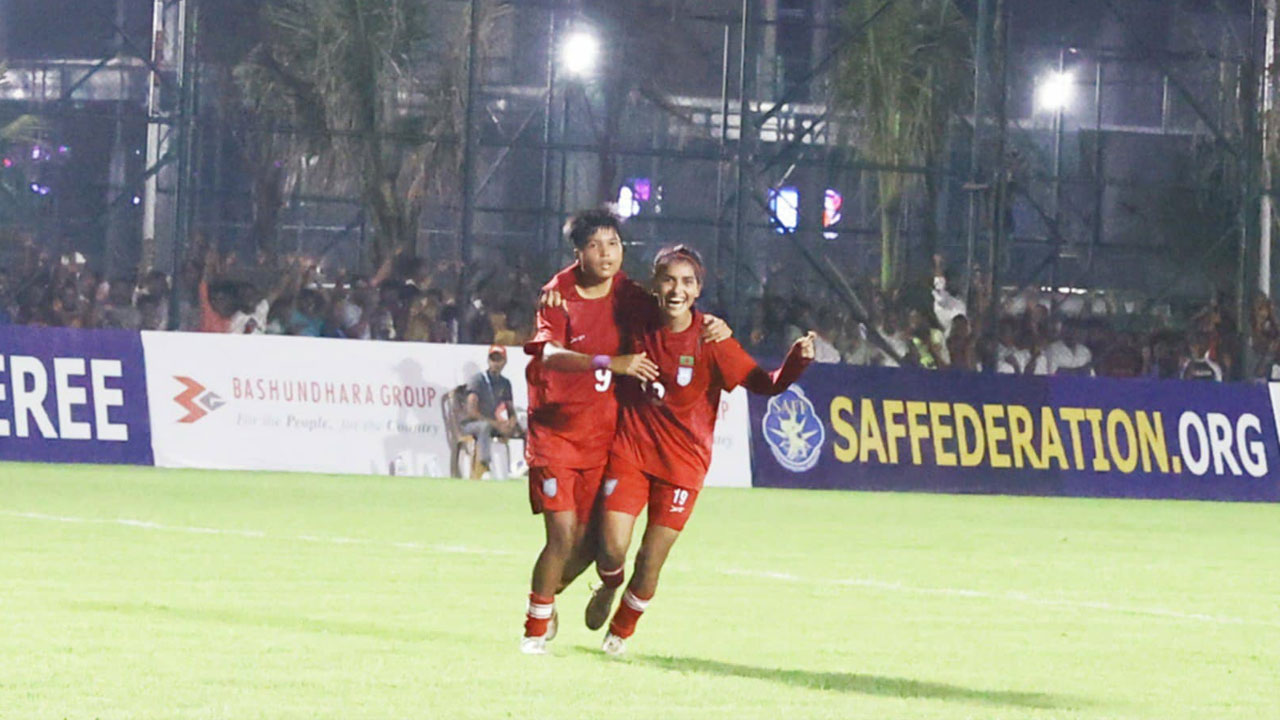 সাফ অনূর্ধ্ব-২০ নারী ফুটবল টুর্নামেন্টে বাংলাদেশের জয়রথ অব্যাহত রয়েছে। আজ নিজেদের চতুর্থ ম্যাচে ভুটানকে ৩-০ গোলে হারিয়েছে স্বাগতিকরা। বৈরী আবহাওয়ায় মাঠ অনুপযোক্ত থাকায় নির্ধারিত ভেন্যু বদলে কিংস অ্যারেনার অনুশীলন গ্রাউন্ডে অনুষ্ঠিত হয়েছে আজকের ম্যাচ।