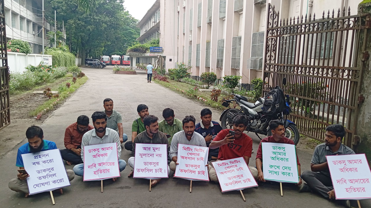 ঢাকা বিশ্ববিদ্যালয় কেন্দ্রীয় ছাত্র সংসদের (ডাকসু) তফসিল ঘোষণার দাবিতে অনশন কর্মসূচি পালন করছেন ঢাকা বিশ্ববিদ্যালয়ের একদল শিক্ষার্থী। এর আগে গত বৃহস্পতিবার (১৭ জুলাই) এ কর্মসূচি ঘোষণা করেন বাংলাদেশ ছাত্র অধিকার পরিষদের কেন্দ্রীয় সভাপতি বিন ইয়ামিন মোল্লা।রোববার (২০ জুলাই) সকালে ঢাকা বিশ্ববিদ্যালয়ের প্রশাসনিক ভবনের সামনে অবস্থান নিয়ে কর্মসূচি পালন করেন তারা।