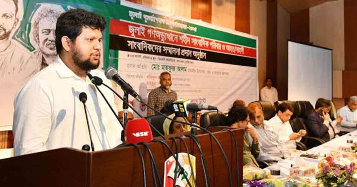 রোববার রাজধানীর তথ্য ভবনে জুলাই গণঅভ্যুত্থানে শহীদ সাংবাদিক পরিবার এবং আহত ও সাহসী সাংবাদিকদের সম্মাননা প্রদান অনুষ্ঠানে প্রধান অতিথির বক্তব্যে এ কথা বলেন তিনি।