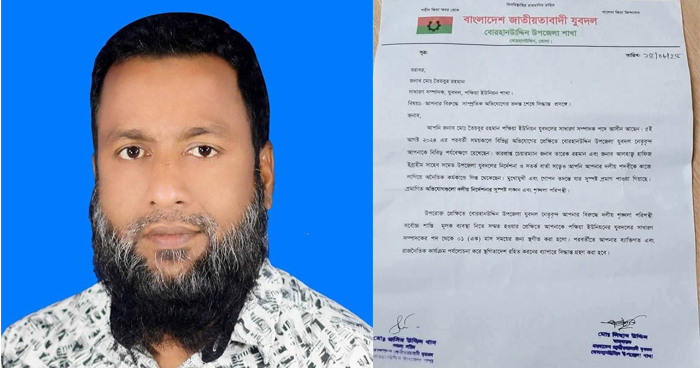 বোরহানউদ্দিনে বিচার সালিশের নামে অর্থ আদায়, যুবদল সাধারণ সম্পাদকের পদ স্থগিত
