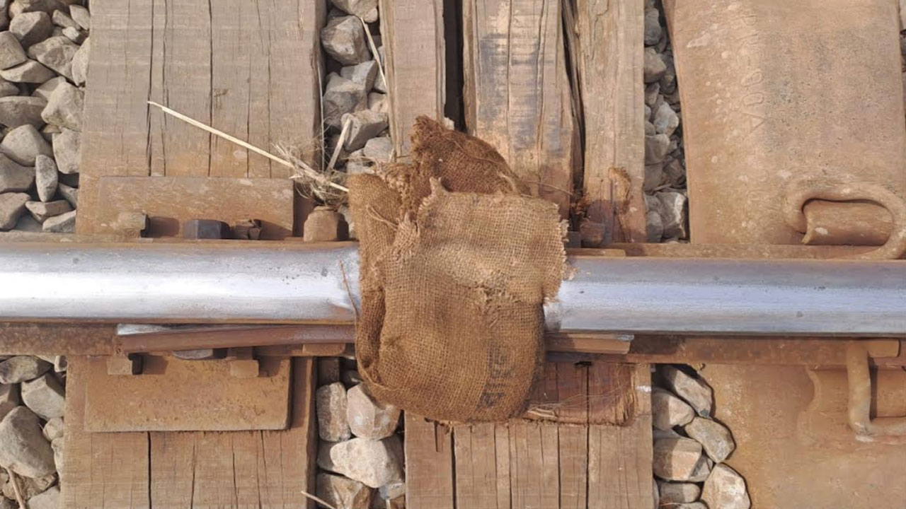 নাটোরের লোকমানপুর স্টেশন সংলগ্ন এলাকায় রেললাইন ভেঙে যাওয়ায় ভাঙা লাইনে পাটের বস্তা গুঁজে ধীরগতিতে ট্রেন চলাচল করছে।