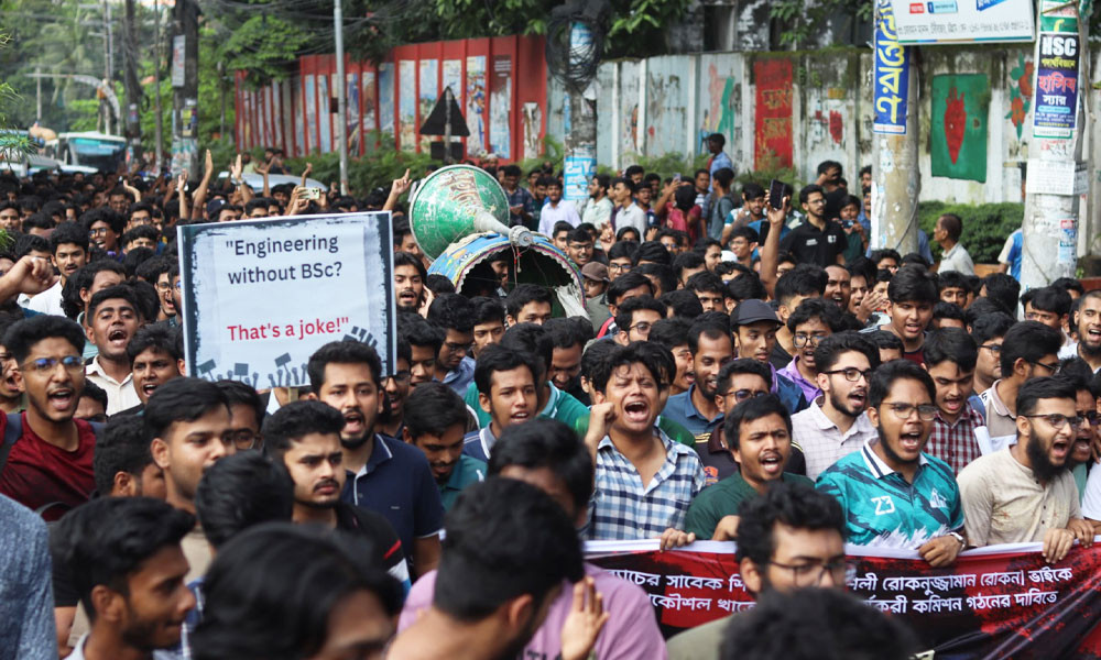 এ সময় আন্দোলনরত পুরকৌশল বিভাগের তৃতীয় বর্ষের শিক্ষার্থী রবিউল আউয়াল কালের কণ্ঠকে বলেন, ডিপ্লোমা সিন্ডিকেটের প্রভাবে দেশের প্রকৌশল খাত আজ ধুঁকছে।