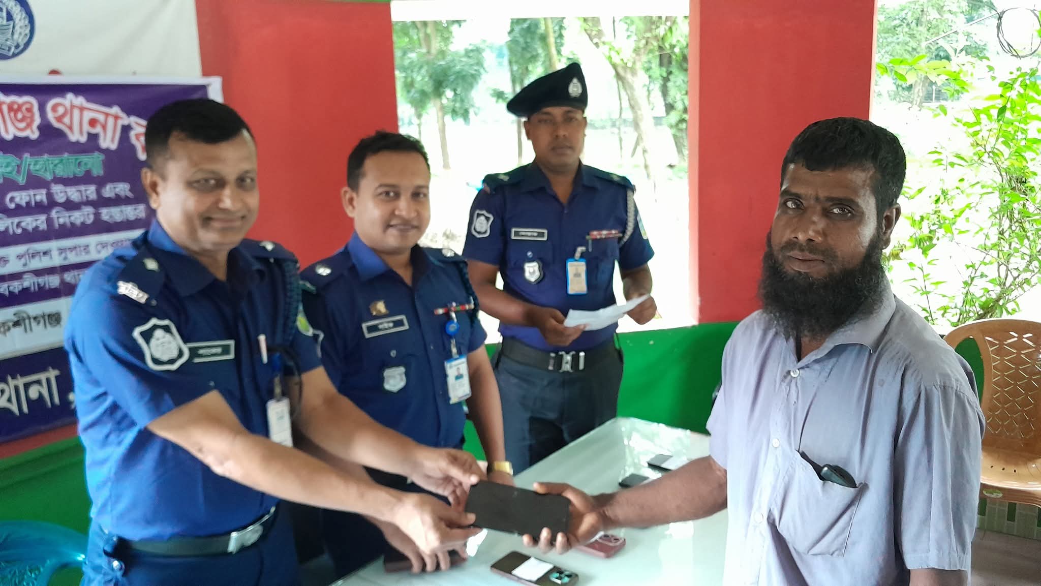 উদ্ধারকৃত মোবাইল হস্তান্তর করেন দেওয়ানগঞ্জ সার্কেলের অতিরিক্ত পুলিশ সুপার সাইফুল ইসলাম ও বকশীগঞ্জ থানার ওসি খন্দকার শাকের আহমেদ। এসময় বকশীগঞ্জ থানার এএসআই মোস্তাক আহমেদ ও এএসআই আবদুল জলিল উপস্থিত ছিলেন।