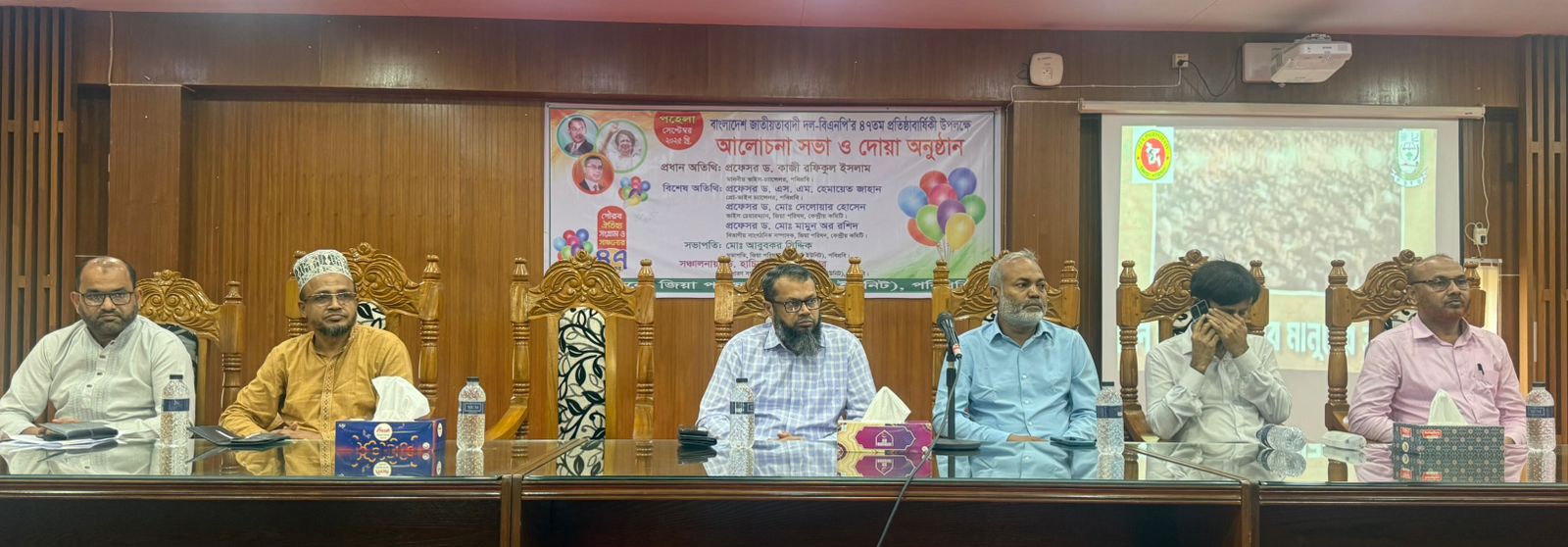 জিয়া পরিষদ কর্মকর্তা ইউনিট পটুয়াখালী বিজ্ঞান ও প্রযুক্তি বিশ্ববিদ্যালয়ের উদ্যোগে বাংলাদেশ জাতীয়তাবাদী দলের ৪৭তম প্রতিষ্ঠা বার্ষিকী ১ লা সেপ্টেম্বর বিশ্ববিদ্যালয়ের টিএসসি কনফারেন্স কক্ষে বিকাল ৩ ঘটিকায় আলোচনা সভা ও দোয়া মাহফিল এর মাধ্যমে অনুষ্ঠিত হয়েছে। জিয়া পরিষদ কর্মকর্তা ইউনিট পটুয়াখালী বিজ্ঞান ও প্রযুক্তি বিশ্ববিদ্যালয়ের সাধারণ সম্পাদক ড. হাচিব মোহাম্মদ তুষার এর সঞ্চালনায় উক্ত অনুষ্ঠানে প্রধান অতিথি হিসেবে উপস্থিত ছিলেন পটুয়াখালী বিজ্ঞান ও প্রযুক্তি বিশ্ববিদ্যালয় এর উপাচার্য প্রফেসর ডঃ কাজী রফিকুল ইসলাম, বিশেষ অতিথি হিসেবে উপস্থিত ছিলেন উপ-উপাচার্য প্রফেসর ড. এসএম হেমায়েত জাহান, জিয়া পরিষদ কেন্দ্রীয় কমিটির ভাইস চেয়ারম্যান প্রফেসর ডঃ মো: দেলোয়ার হোসেন, বিভাগীয় সাংগঠনিক সম্পাদক প্রফেসর ডঃ মোঃ মামুন অর রশিদ। অনুষ্ঠানের সভাপতিত্ব করেন জিয়া পরিষদ কর্মকর্তা ইউনিট পটুয়াখালী বিজ্ঞান ও প্রযুক্তি বিশ্ববিদ্যালয় এর সভাপতি মোঃ আবুবকর সিদ্দিক। অনুষ্ঠানে অন্যানের মধ্যে বক্তব্য রাখেন পটুয়াখালী বিজ্ঞান ও প্রযুক্তি বিশ্ববিদ্যালয় এর জাতীয়তাবাদী ছাত্রদলের সাধারণ সম্পাদক সোহেল রানা জনি, সভাপতি জাহিদ রাতুল, জাতীয়তাবাদী আদর্শের কর্মচারীদের প্রতিনিধি মোঃ মাহবুব হোসেন, জিয়া পরিষদ পটুয়াখালী বিজ্ঞান ও প্রযুক্তি বিশ্ববিদ্যালয় কর্মকর্তা ইউনিটের কার্যনির্বাহী সদস্য রিয়াজ কাঞ্চন শহীদ, ডঃ আমিনুল ইসলাম টিটু, যুগ্ম সাধারণ সম্পাদক ডঃ রাহাত মাহমুদ, সহ-সভাপতি মোঃ আবুল হোসেন, ইউনিভার্সিটি টিচার্স অ্যাসোসিয়েশন (ইউ ট্যাব) পবিপ্রবি শাখার সাংগঠনিক সম্পাদক ড. এবিএম সাইফুল ইসলাম, যুগ্ম সাধারণ সম্পাদক প্রফেসর ড. মো:.ইখতিয়ার উদ্দিন প্রমুখ। বক্তারা বলেন আগামী জাতীয় সংসদ নির্বাচন উপলক্ষে একটি পক্ষ ফাসিস্টদের ছত্র ছায়ায় নির্বাচন বানচালের ষড়যন্ত্র করছে । কোন কুচক্রী মহলের ষড়যন্ত্রে যাতে পটুয়াখালী বিজ্ঞান ও প্রযুক্তি বিশ্ববিদ্যালয় শিক্ষা ও একাডেমির কার্যক্রম বিঘ্নিত না হয় সে বিষয়ে সকলকে সতর্ক থাকার অনুরোধ করেন। আলোচনা শেষে দোয়া, মোনাজাত,ও তাবারক বিতরণ এর মাধ্যমে অনুষ্ঠানের সমাপ্তি ঘোষিত হয়।।# জাকির হোসেন হাওলাদার, দুমকি, পটুয়াখালী।